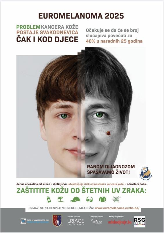 Predsjednica Euromelanoma u BiH, Prim. mr. sci. med. dr. Hana Helppikangas-Hunara,spec. dermatolog, zajedno sa svim dermatolozima najavljuje kampanju u mjesecu maju te se pozivaju svi građani da posjete web stranicu : www.euromelanoma.eu/bs-ba/ i odaberu grad i liječnika za preventivni pregled mladeža.
