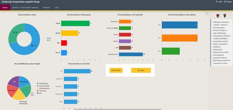 Baza podataka sadržavat će informacije o broju ovisnika koji su evidentirani kroz Zavod za bolesti ovisnosti Kantona Sarajevo i drugih institucija, broj krivičnih djela koja je evidentirao MUP Kantona Sarajevo, podatke o zapljenama, vrsti droga, spolu i starosnoj dobi ovisnika, broju edukacija/časova i drugih mjera koji se preventivno održavaju u školskim ustanovama i drugo. Očekivano je da baza podataka bude operativna za nekoliko mjeseci, kada je u planu i realizacija nove kampanje protiv zloupotrebe droga u KS. Bit će to prvi put da se u Kantonu Sarajevo na strateški način i uvezivanjem svih relevantnih institucija formira ovakva baza podataka. Važno je naglasiti da baza neće sadržavati lične podatke, a unos će vršiti samo ovlaštena lica.