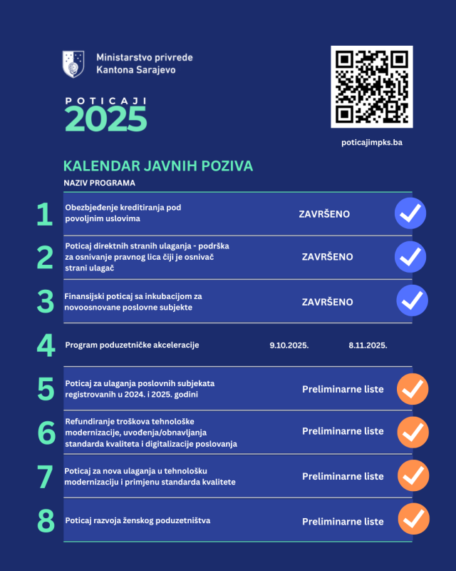 Četiri javna poziva Ministarstva privrede Kantona Sarajevo ove godine privukla su rekordan broj prijava, a objavljene su i preliminarne liste za sljedeće programe:
