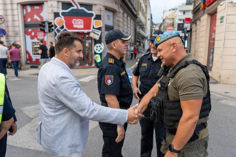 Ministar unutrašnjih poslova Kantona Sarajevo Admir Katica i policijski komesar Uprave policije MUP-a KS Fatmir Hajdarević obišli su policijske službenike raspoređene na obezbjeđenju brojnih javnih događaja koji se održavaju u gradu.