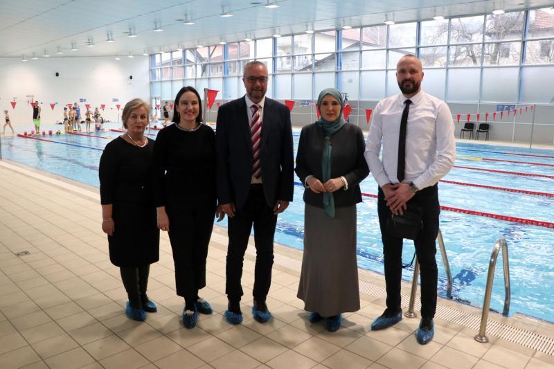 Ministrica za odgoj i obrazovanje Kantona Sarajevo Naida Hota-Muminović, načelnica Općine Novo Sarajevo Benjamina Karić te direktorica Instituta za razvoj preduniverzitetskog obrazovanja KS Senada Salihović posjetile su danas Fakultet sporta i tjelesnog odgoja (FASTO)Univerziteta u Sarajevu, gdje se za učenike četvrtih razreda osnovnih škola s područja Novog Sarajeva trenutno realizira program Škola plivanja.