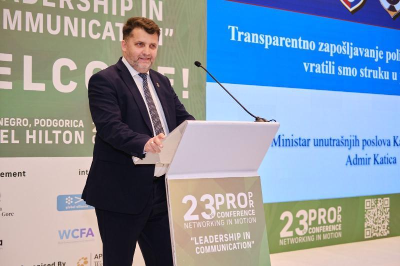 Ministar unutrašnjih poslova Kantona Sarajevo Admir Katica u Podgorici je pred velikim brojem učesnika konferencije koja okuplja vodeće komunikacijske profesionalce, stručnjake i komunikacijske lidere iz regiona i šire, održao prezentaciju o metodologiji zapošljavanja policijskih službenika koja se primjenjuje u Kantonu Sarajevo.