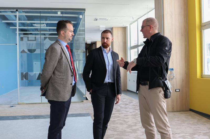 Napredak radova obišli su ministar privrede Kantona Sarajevo Zlatko Mijatović i ministar finansija Kantona Sarajevo Afan Kalamujić, koji su s dekanom pomenutog fakulteta Harisom Lulićem i prodekanom Nedimom Pervanom razgovarali o narednim koracima, kao i o ulozi HUB-a u povezivanju obrazovanja, institucija i privrede.