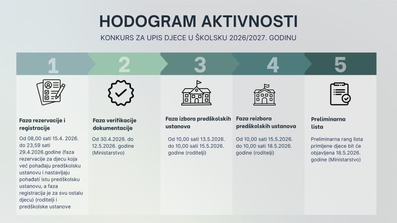 Za lakše snalaženje kroz cijeli proces, pripremljeni su i hodogrami aktivnosti, kroz koje su jasno prikazani svi koraci upisa, od registracije do konačnog upisa djece u predškolske ustanove.
