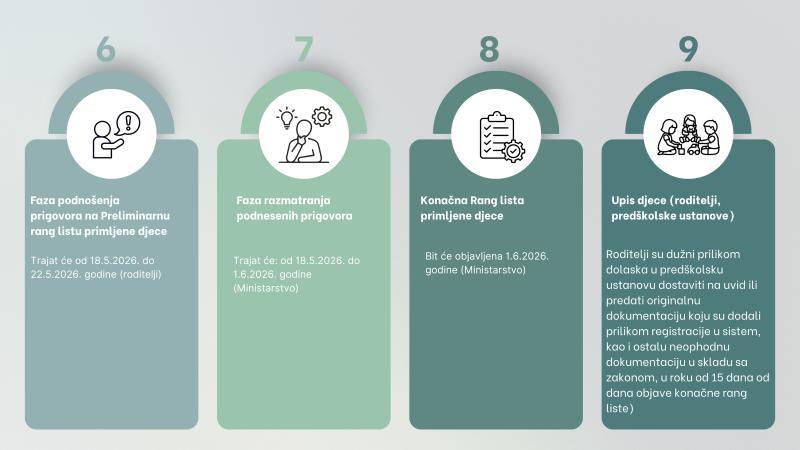 Preliminarna rang lista primljene djece bit će objavljena 18. maja. Nakon objave, roditelji mogu podnijeti prigovor u periodu od 18. do 22. maja.